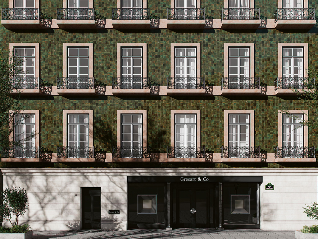 Glossy jade ceramic tiles bring an elegant touch to interior and exterior walls.