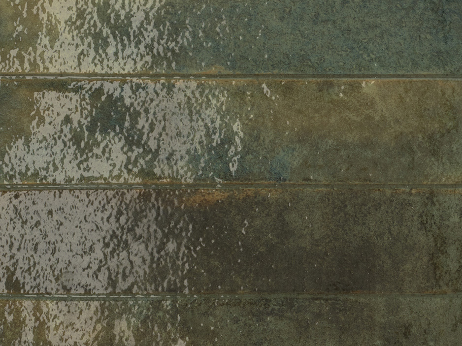 These glossy Kech Jade tiles feature a subtle muted green tone that brings a vibrant look to any interior or exterior wall.