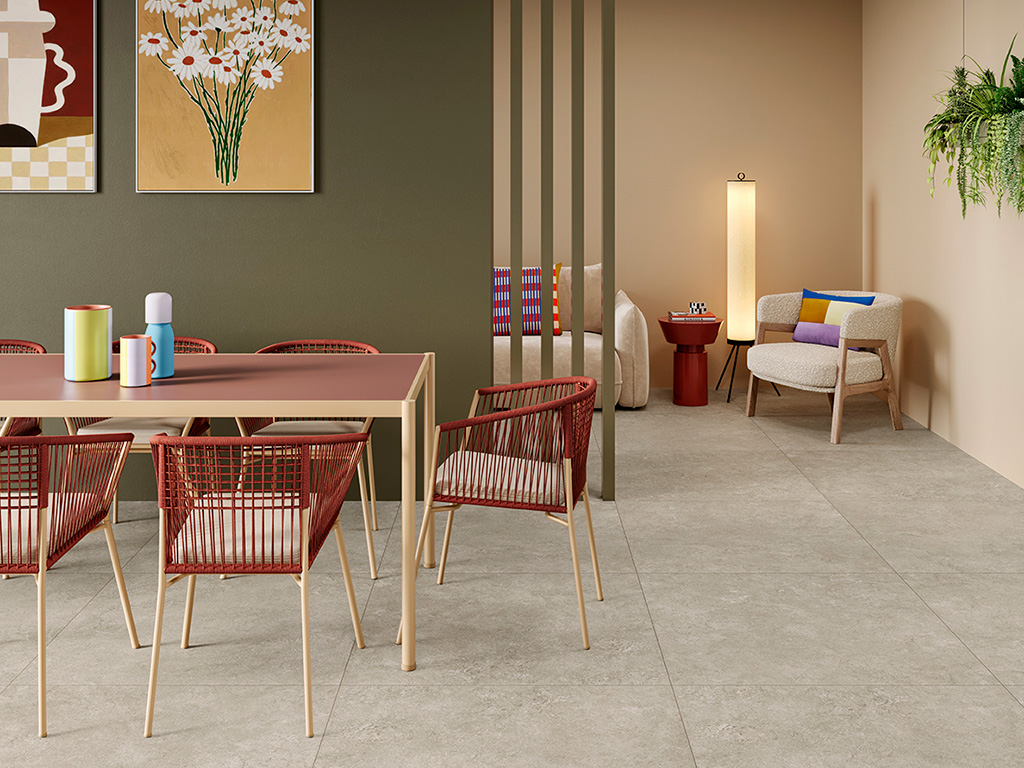 Soft Stone Grey porcelain tiles with a matt finish, bringing a modern, understated elegance to any interior.